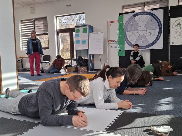 Az év során tovább folytatódott a trénerképzés is, amely a Kinaesthetics szakmai utánpótlását biztosítja. Áprilisban kilenc új trénerkollégát avathattunk. A képzések során az elméleti tananyag mellett nagy hangsúlyt fektettünk a gyakorlati tapasztalatszerzésre, valamint a trénerek szerepének tudatosítására a tanulási folyamatok támogatásában. A trénerképzések nemcsak szakmai fejlődést biztosítanak, hanem közösségépítő erejük is jelentős, hiszen az új trénerek bekapcsolódása erősíti és frissíti a romániai hálózatot.